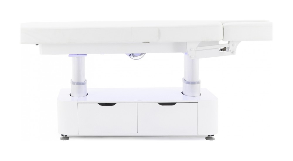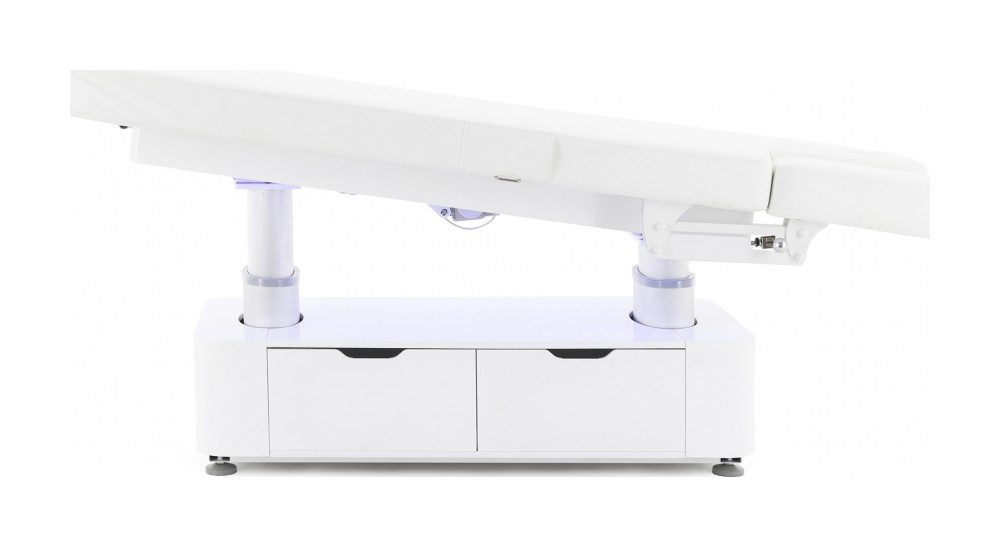 Этот массажный стол создан для профессионалов, которым важны надёжная конструкция, гибкая система регулировок и практичные элементы хранения. Благодаря телескопическим колоннам, нескольким электрическим приводам и декоративной подсветке он обеспечивает высокий уровень комфорта и удобства в использовании.