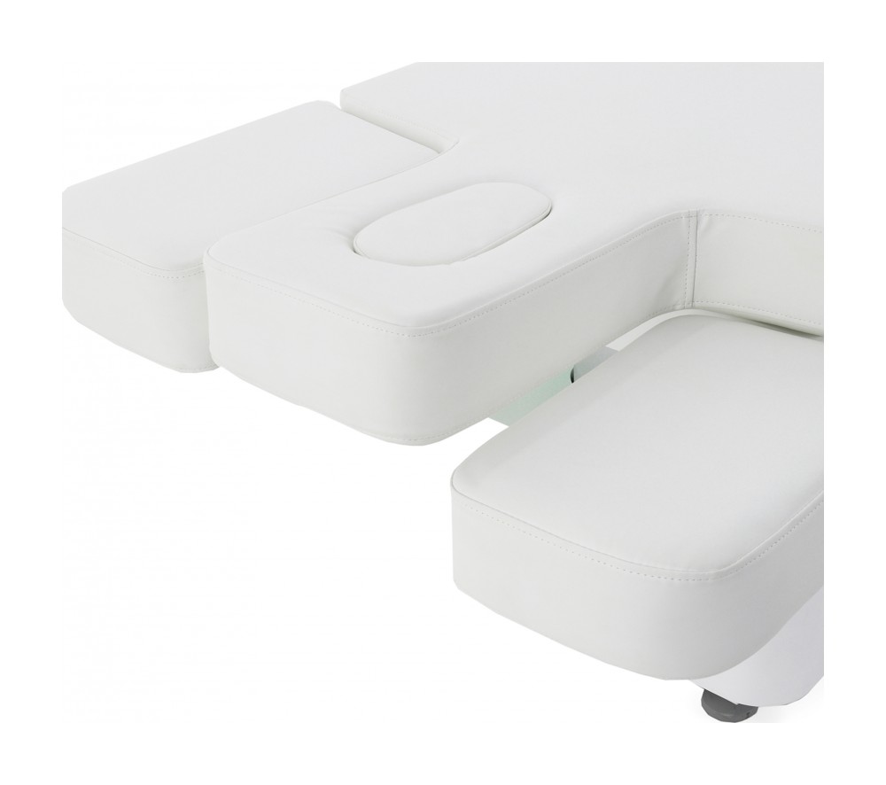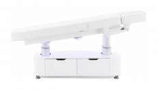 • Подлокотники регулируются по высоте, мягкое ложементное наполнение (10 см) и удобный люверс для лица улучшают впечатления от процедуры.