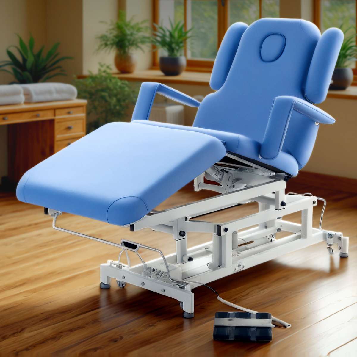 Удобство специалиста: ножной пульт и автоматические настройки угла наклона освобождают руки и позволяют работать с клиентом более эффективно.